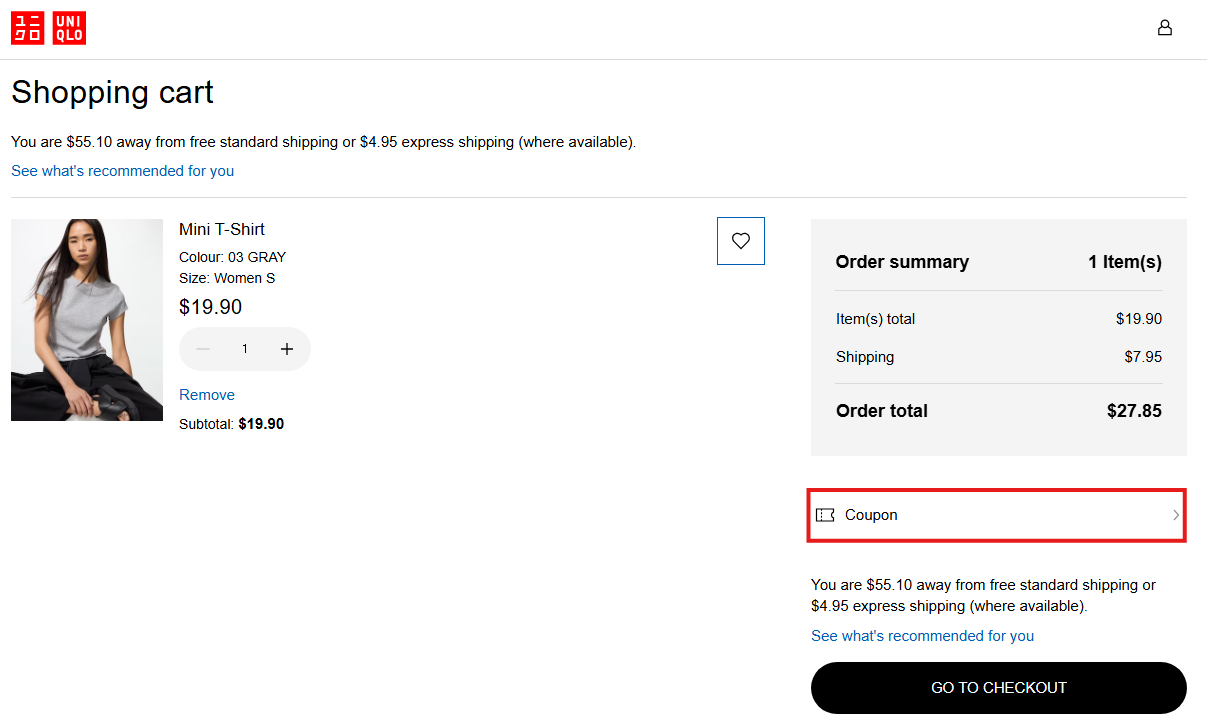 1. Click into your shopping cart and choose 'Coupon' under Order Summary.